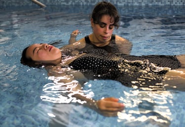 Overcome a fear of water with gentle and supportive guidance, step by step, in a shallow warm pool.