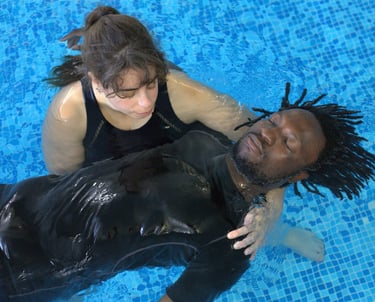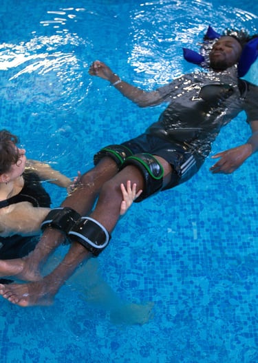 Once in the pool I will put floats on your legs and when you are ready, guide you to a floating position.